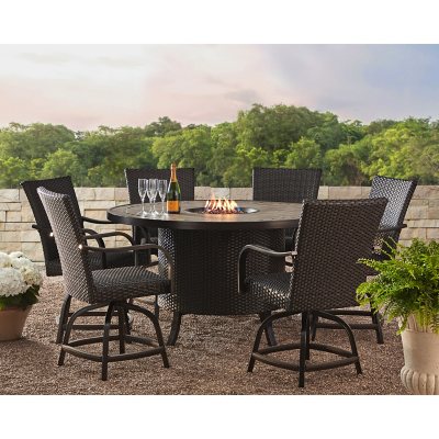 Product Name: San marcos 7 piece bar height patio set with fire pit 60 inch round table for 6 person sale